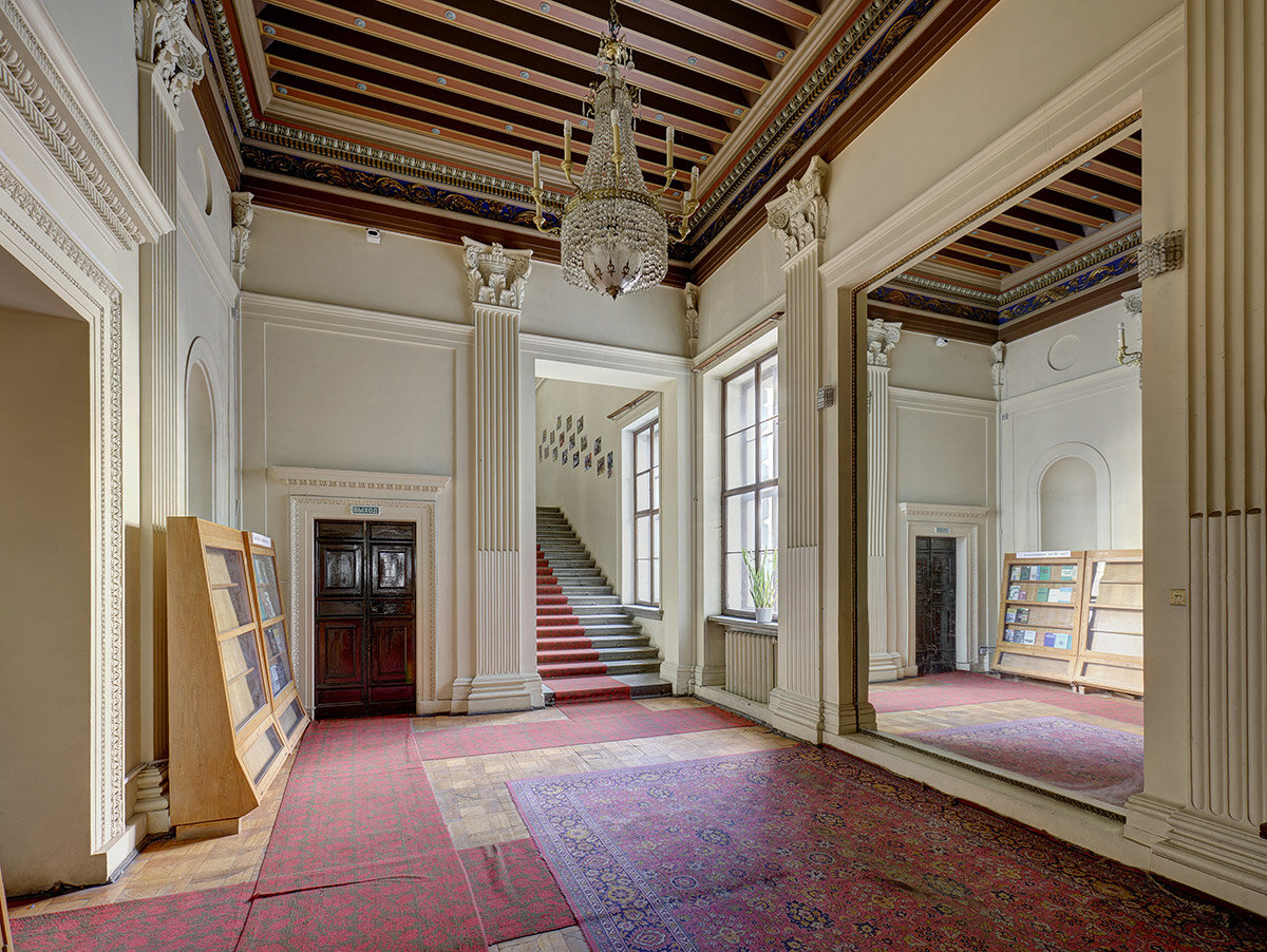 Здание и его интерьеры напоминают итальянский ренессанс конца XVI века. Мы полюбуемся великолепными росписями потолков, повторяющими работы Тициана, Тинторетто и Пинтуриккио. Увидим парадную лестницу из черного дерева, мраморный зал и библиотеку, которую часто используют для съемок кино.